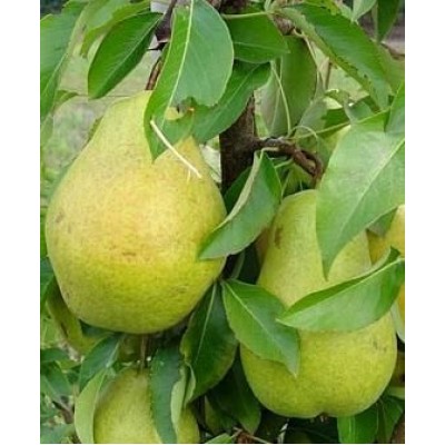 Груши зеленоватого цвета, к моменту созревания на боку появляется небольшое пятнышко красноватого цвета. Кожица тонкая, мякоть сладкая, насыщенного желтого цвета, вкус отменный.