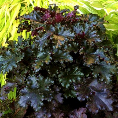 Чёрная гейра — это растение с насыщенно-бордовыми листьями, которые украшены крупными жилками и имеют изогнутую форму. Они будут радовать вас своей красотой до поздней осени.