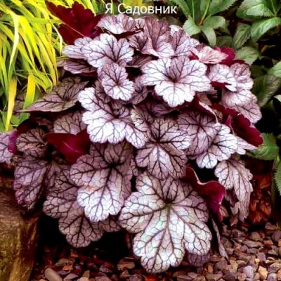 Гейхера Вельвет Найт — это многолетнее растение, которое поражает своей красотой. Его листья имеют насыщенный тёмно-бархатный оттенок, а по краям украшены серебристой каймой. В июле и августе гейхера радует глаз небольшими белыми соцветиями, которые создают в саду неповторимую атмосферу.